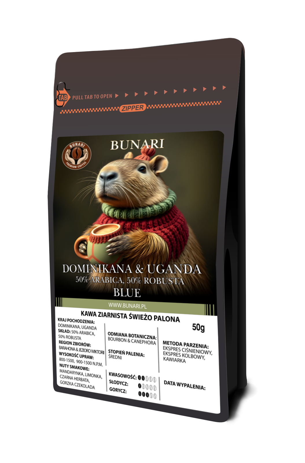 Świeżo palona mieszanka kaw 50% Arabiki i 50% Robusty pochodząca z Dominikany i Ugandy, stworzona z myślą o miłośnikach wyrafinowanych kompozycji premium. Ziarna z regionu Barahona oraz znad Jeziora Wiktorii dojrzewają w zróżnicowanych warunkach klimatycznych, nadając kawie świeżość i wyrazistą głębię. Profil smakowy łączy nuty mandarynki i limonki z akcentami czarnej herbaty oraz gorzkiej czekolady. Średni stopień palenia podkreśla równowagę między lekką kwasowością a szlachetną, średnią goryczą. Mieszanka zachowuje wysoką intensywność, pozostając jednocześnie harmonijna i elegancka. Doskonale sprawdza się w ekspresach ciśnieniowych, ekspresach kolbowych oraz kawiarce, oferując głęboki i luksusowy napar.